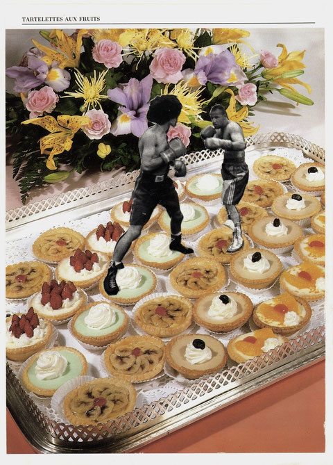 Par ailleurs, c'est aussi l'occasion de jouer avec les titres des recettes. Destinés à piquer nos imaginaires gourmands, leurs mots et sonorités peuvent aussi évoquer le combat qui se joue. Ainsi tarte, baba, flan, ne sont pas sans évoquer les interjections du langage courant qui évoquent des chocs tels les paf ! , boum ! et autres vlan ! abondamment utilisés en bande dessinée. Dans cet esprit de jeu, le titre de cet ensemble évoque les typologies de terrain en usage dans le sport, et détourne à son libre profit les mots évocateurs d'un célèbre livre de Claude Lévy-Strauss.